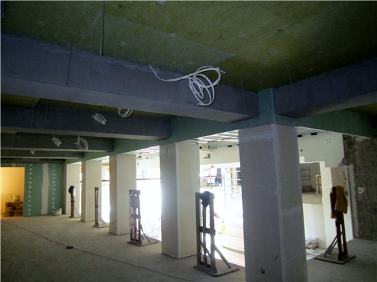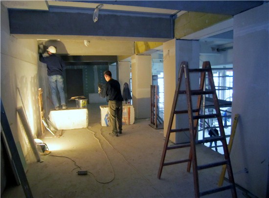 Duża przestrzeń, której tak wcześniej brakowało i monumentalne filary, nawet na tym etapie dodają sali światła i nowoczesności. Firma realizująca przebudowę wykonała już większość robót murowych i tynkarskich. Trwają prace instalacyjne i montażowe. Niebawem umieścimy relację fotograficzną z kolejnych postępów prac wykończeniowych.